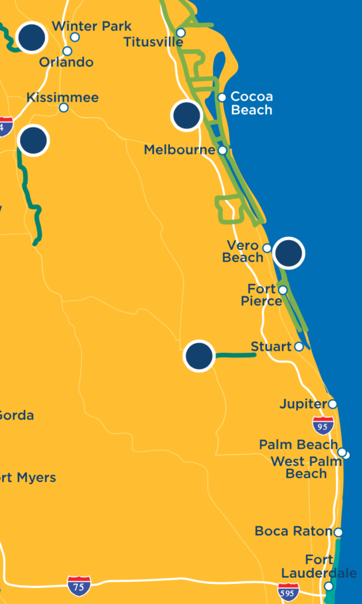 We gaan eerst nog via twee Scenic Highways op weg naar al die pret. Beiden voeren ons langs de kust van de Atlantische oceaan. We zien ter plekke wel of we vanaf Vero Beach al het binnenland ingaan of doorrijden naar het bekendere Cocoa Beach.
