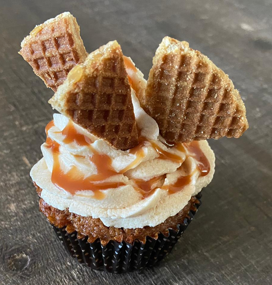 Na de schoenen waren we toe aan een fris drankje en vonden we een tentje waar ze een lekkere mix maken van verse aardbeien, bessen en frambozen met melk. Het had een naam, maar he, die weet ik niet meer hoor. Het was in elk geval heerlijk fris en fruitig. Ondertussen WhatsApp ik met Esmee die handig gebruik maakt van mijn grote collectie bakspullen, de KitchenAid en de recepten van Laura’s Bakery online. Ze stuurt me een foto van de stroopwafelcupcake die ze heeft gebakken omdat ze Mandy en Duncan, onze Britse buren op de koffie krijgt. Ze zwaait even naar ons via onze bewakingscamera en laat me later weten dat mijn vriendin Elisabeth haar met de boodschappen uit het dorp heeft thuisgebracht en al twee cupcakes heeft verorberd.