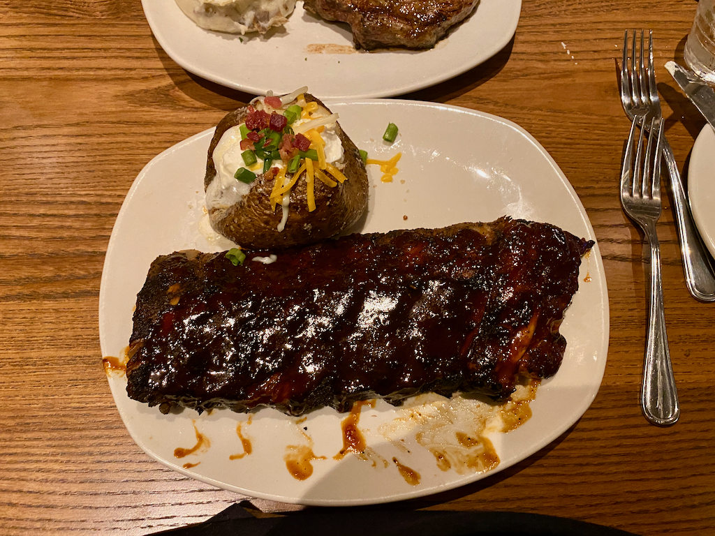 Tjonge, zo lekker! Nee, we gaan er geen dagelijkse gewoonte van maken, het is niet gezond, maar het is zo goed en het hoort voor ons bij een jarenlange Amerika-traditie. Breakfast at Denny´s en diner at Outback Steakhouse. Guess waar ik voor vanavond al gereserveerd heb. We eten er lekker van, gaan nog een keer naar het toilet voor de zekerheid en toeren dan terug naar ons hotel. Inmiddels zijn de eigenaren wel gearriveerd en ga ik netjes over mijn beertje vertellen. Ik schaam me rot, maar vooruit, ze lossen het snel en netjes op, terwijl Albert buiten wacht en ik hier het fort bewaak. Als alles klaar is, haal ik voor ons allebei een kop koffie bij de receptie en drinken we die rustig even op, terwijl we naar het weerbericht kijken. Mán, het wordt hier rond de 30 graden vandaag met een behoorlijke luchtvochtigheid. Mmm, voor Alberts pijn niet zo fijn, maar het is aardig gegaan, zegt hij nu. Gelukkig komt er een heus koufront aan deze week, maar de jassen kunnen wel uitblijven hoor, onder de 20 graden komt het niet. Het valt ons vooral op hoe warm het hier ´s nachts nog blijft, dat is bij ons in de woestijn wel anders. (70 Fahrenheit is 21 Celcius, 80 Fahrenheit is 29 Celcius, ongeveer)