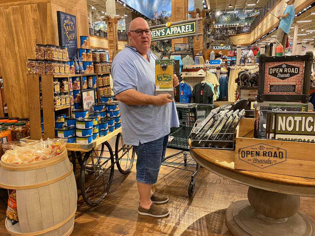 Na dit avontuur gaan we via Daytona Beach terug. Deze plaats is vooral bekend om het enorme Speedway circuit waar o.a. Nascar zijn races houdt. Vorige week is er nog een spectaculair ongeluk gebeurd met gelukkig goede afloop. We twijfelden of we geld over hebben voor een toer door dit enorme ding, maar de regen zorgt ervoor dat we er niet meer over na hoeven denken. Geen zin, we gaan naar de overkant naar Bass Pro Shops. Daar kijkt vooral Albert altijd graag even rond en ik vind ook altijd wel wat om mee te nemen. Dit keer is dat o.a. een cadeautje voor het nieuwe huis van Peet en Hendrika waar ze in april de sleutel van krijgen. Onderweg klets ik via WhatsApp even met Esmee en met Ceceline, die op wintersport is met de kinderen, maar in mei ook deze kant op komt.