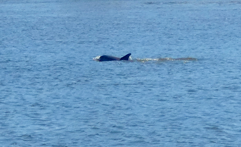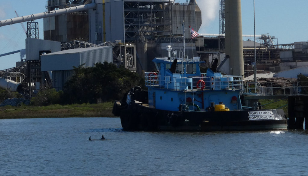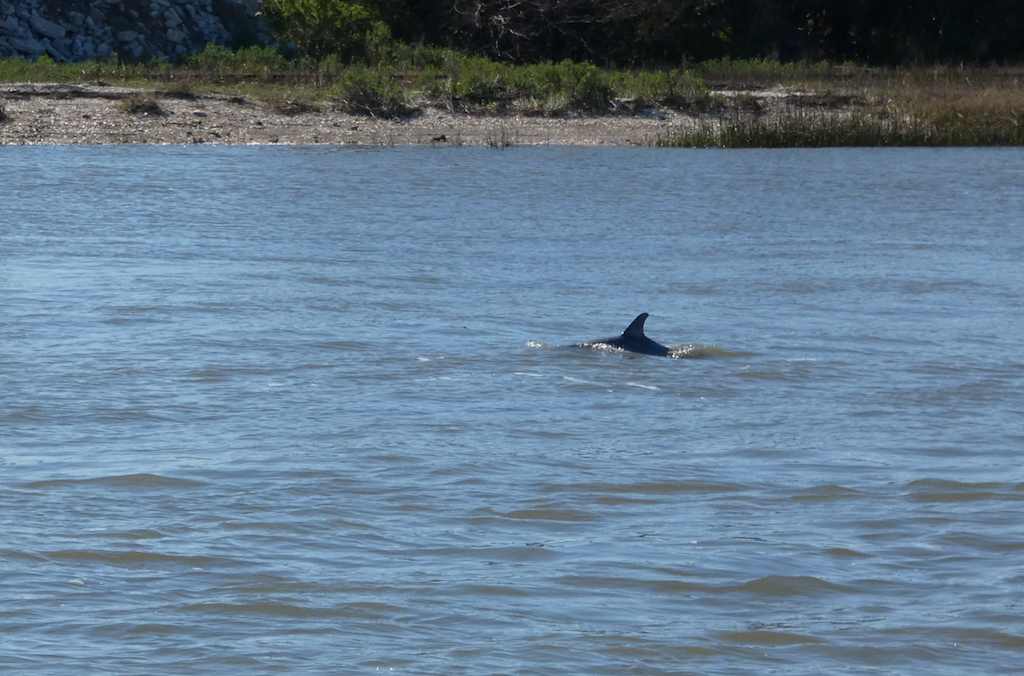 We varen langs Old Town Fernandina, waar de film ´New Adventures of Pippi Longstocking´ is opgenomen en Bob wijst ons op het groene huis wat in het Engels dus Villa Villekulla heet. Villa Kakelbont dus, maar niet hetgeen wij herkennen uit de Zweedse films. Ondertussen hebben we al diverse dolfijnen gespot, maar die dingen zijn toch erg lastig om op de foto te krijgen. Als je ze ziet, duiken ze al weer onder. Niet zoals in Australië een aantal jaren geleden waar ze constant met onze boot mee zwommen. Maar vooruit, hier en daar is een rug en een staart te zien 🙂