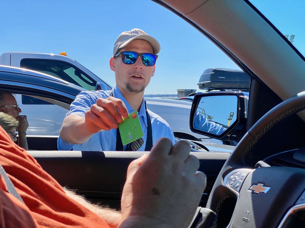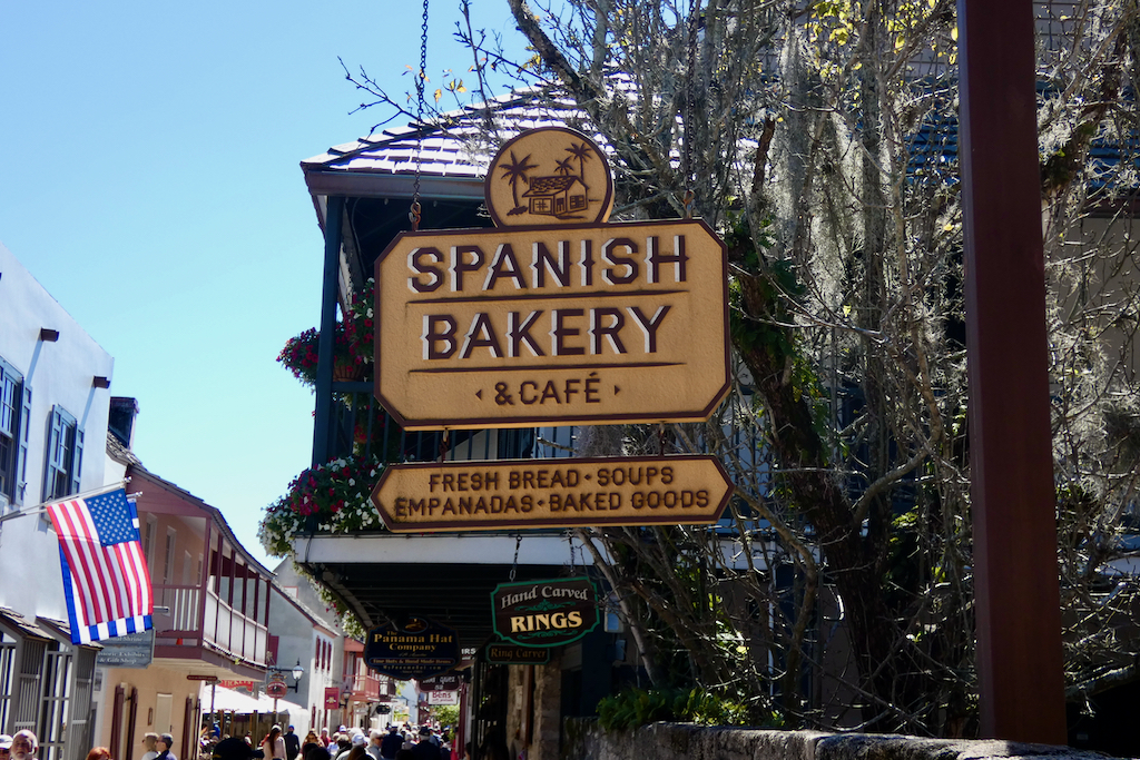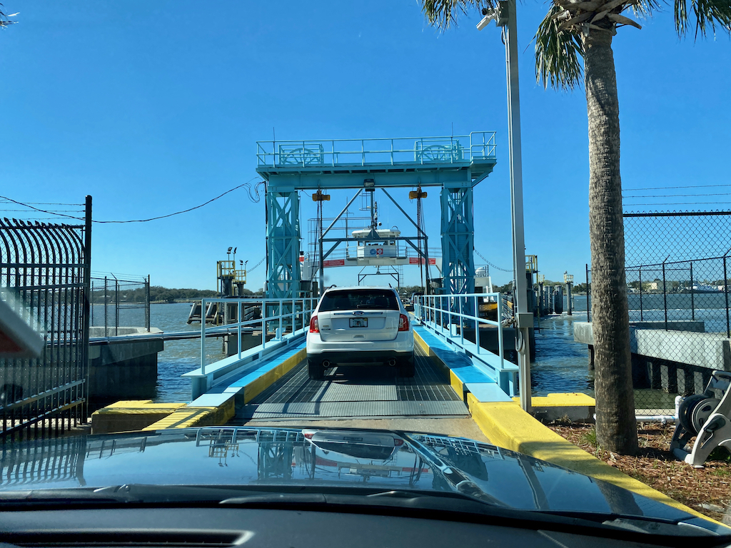 Na de tour, die echt nog wel heel fris was, bij het uitstappen was het tien graden, gingen we St. George Street in, waar de meeste toeristische winkels zijn. Heel hard toe aan een sanitaire stop en een lunchhapje. Bij de Spanish Bakery scoren we allebei een worst in een stukje deeg en omdat we die opeten op het terras van Whelstone Chocolaterie, haal ik daar warme chocomel voor Albert en een frozen hot chocolate salted caramel voor mij. We hebben het snel gezien tussen de drukke toeristen en gaan naar de auto. Daarna hebben we nog een rit te gaan. In anderhalf uur over de snelweg? Nee, we besluiten dat we nu bijna de hele A1A hebben gehad en die dan ook tot het eindpunt gaan rijden. Dat betekent weer langs de kust en de Intercoastal Waterway en met de veerboot naar Amelia Island. Dat is ons doel voor vandaag en morgen. We rijden even langs de haven om te kijken of de rondvaartboot helemaal open is, want dat vinden we echt te koud voor morgen. Als blijkt dat dat niet zo is, boek ik online tickets voor morgen. We gaan weer varen!