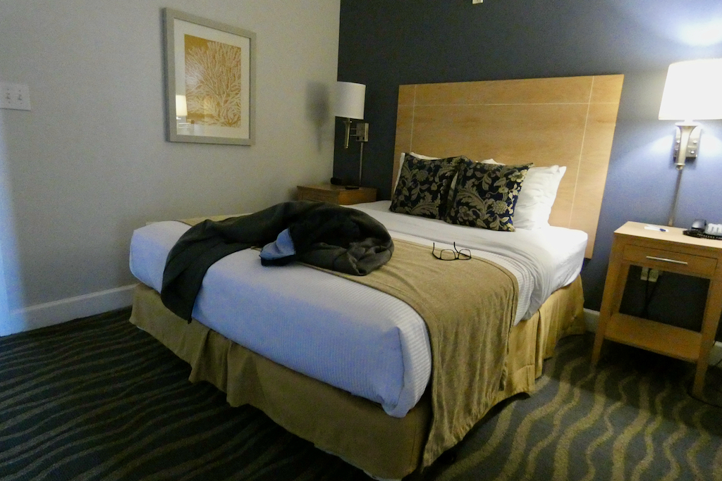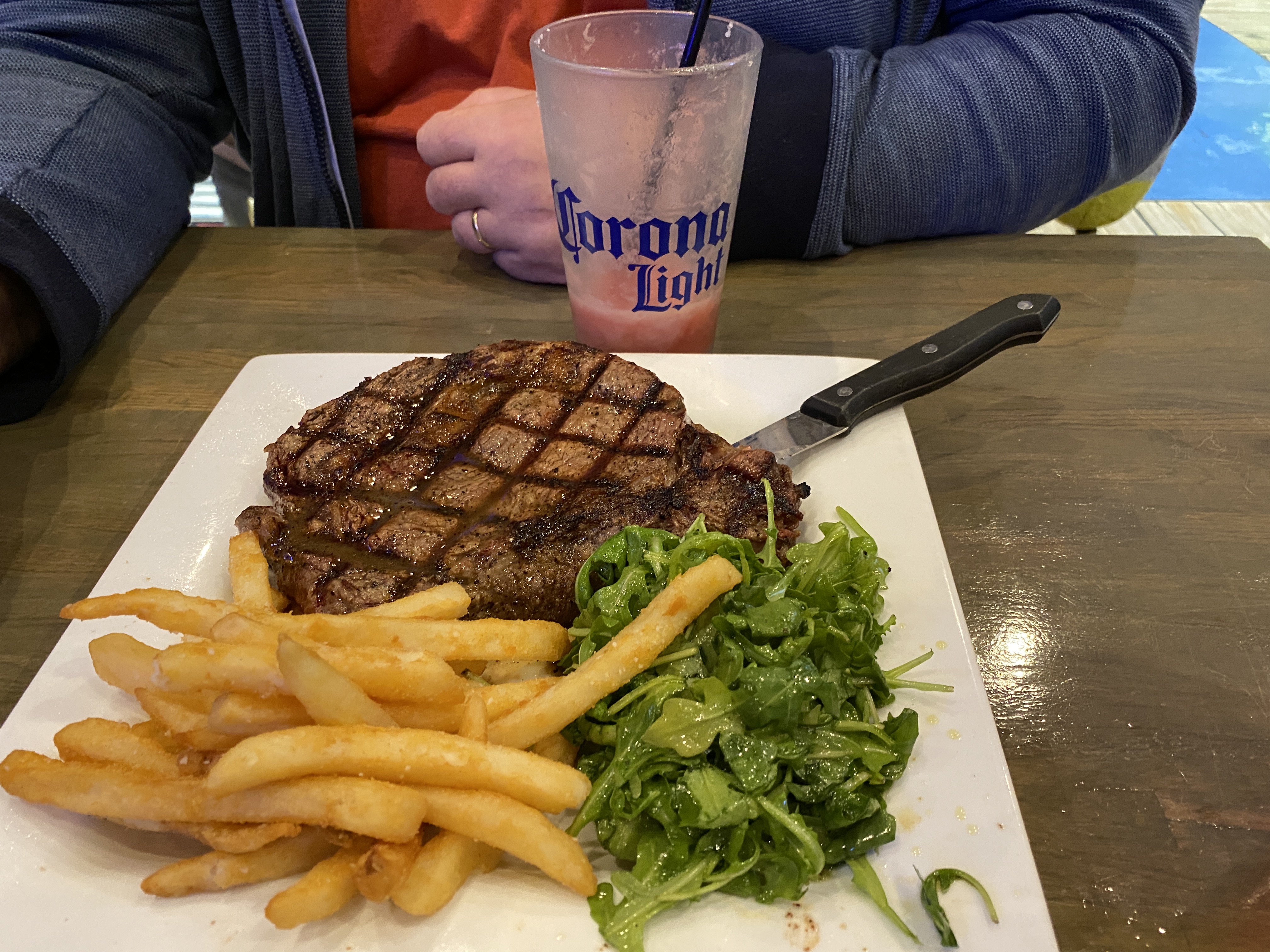 We checken in het hotel en na een korte rustpauze wandelen we naar de buren. Pal aan het strand ligt de Sandbar & Kitchen en we treffen het. We krijgen een tafel midden in de zaak, waar een leuk duo voor country-achtige nummers zit te spelen. En goed! We eten er een geweldige steak, zo een die je maar zelden treft en genieten met volle tuigen. Na de koffie gaat Albert dus even rustig TV kijken (denk ik) en ik zit hier nu in de hotellobby bij de televisie met een kop koffie verslag te maken. Nederland is opgeschrikt door het eerste geval van corona in Tilburg en dan ook nog iemand die carnaval is gaan vieren, hier in Amerika is in Californië nu ook definitief het virus vastgesteld. We houden moed dat we nog thuis gaan komen!