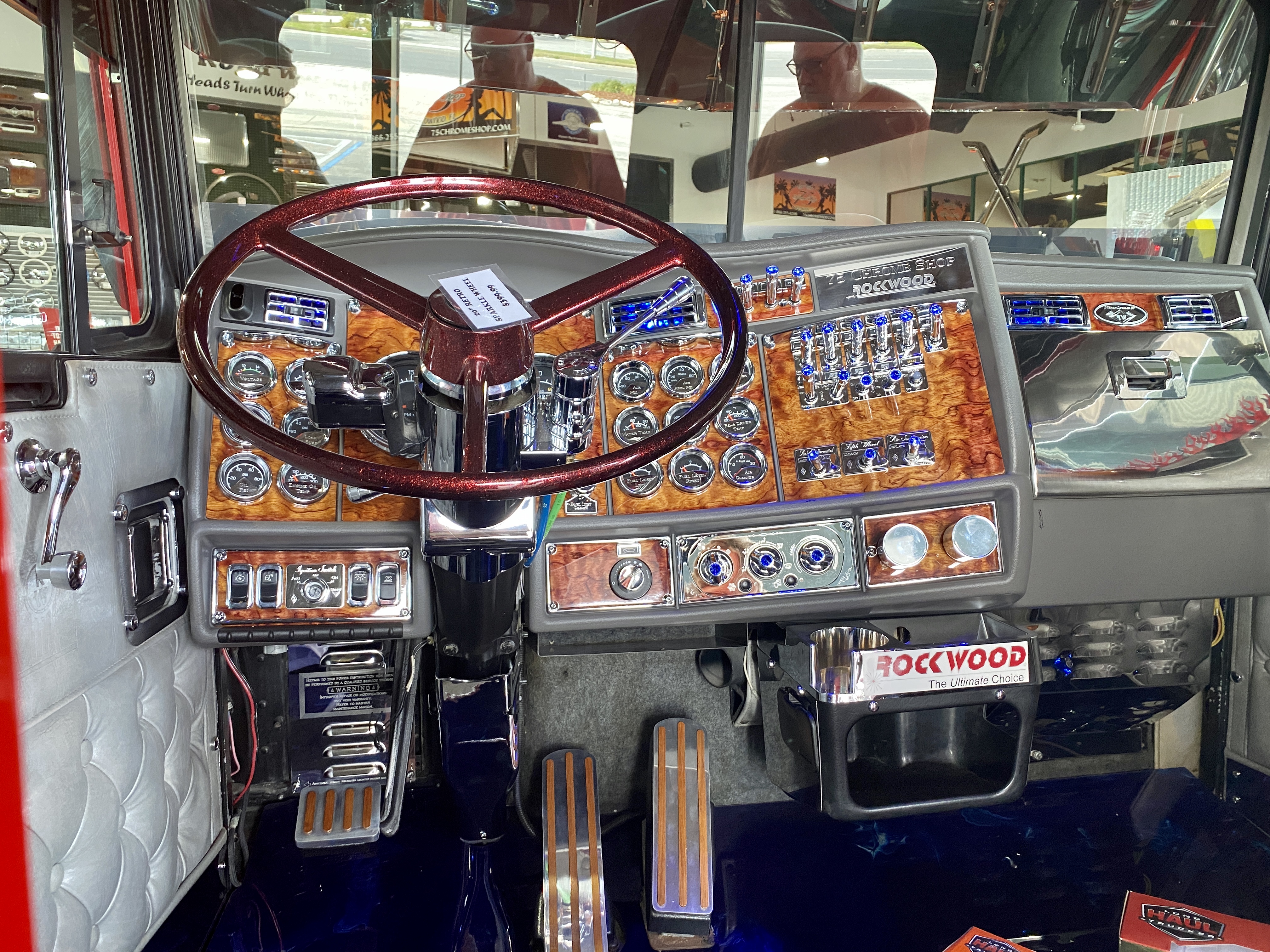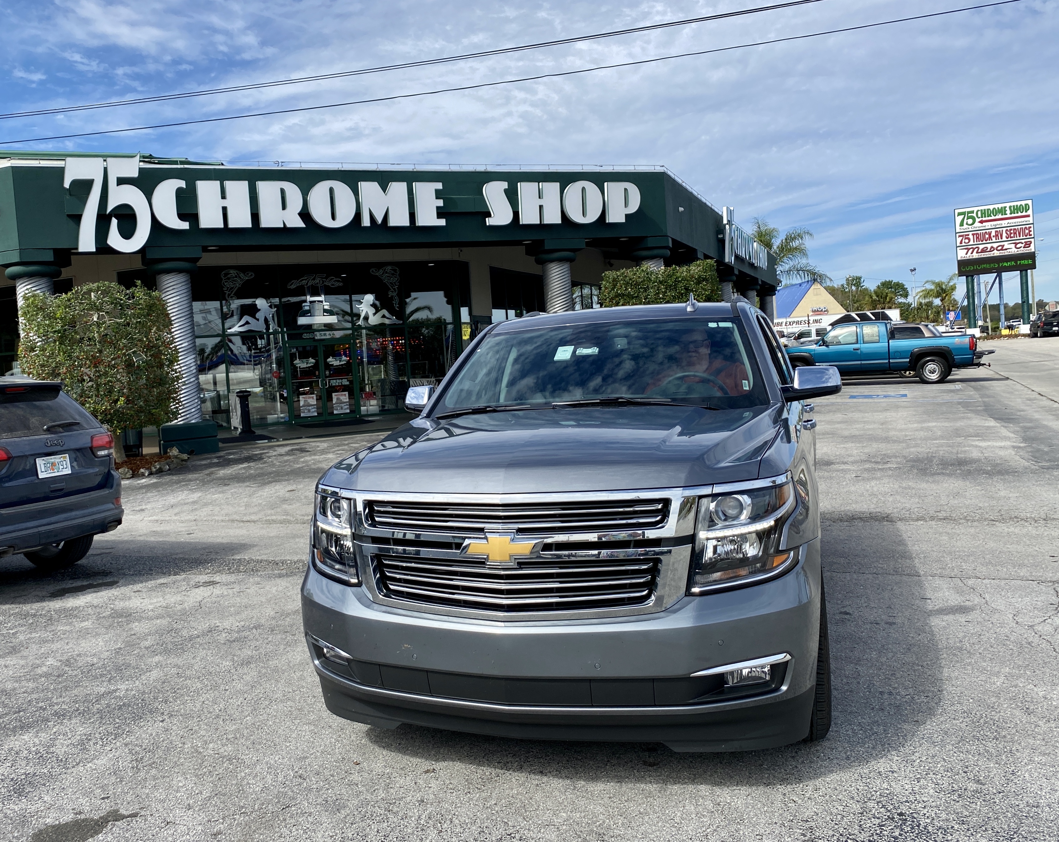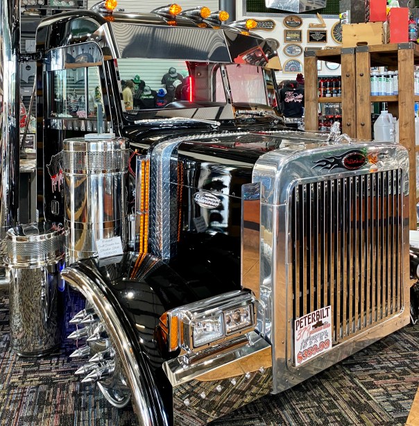 Daarna rijden we richting The Villages, waar Albert deze week een truckstop zag, maar eigenlijk miste waar ik hem op wees toen we er voorbij waren: de 75 Chrome Shop. Het 75 slaat op het nummer van de snelweg, het chrome is duidelijk heel veel blingbling wat aan vrachtwagens zit. Echt, je kijkt er je ógen uit, heel erg gaaf. En foto´s maken natuurlijk, voor de chauffeurs in de familie en vriendenkring, we kennen er genoeg. Ik scoor een schattig babycadeautje en Albert vindt een t-shirt van de zaak in zijn maat, maar jammer genoeg kan ik voor de kleinzoons niets vinden in hun maat.
