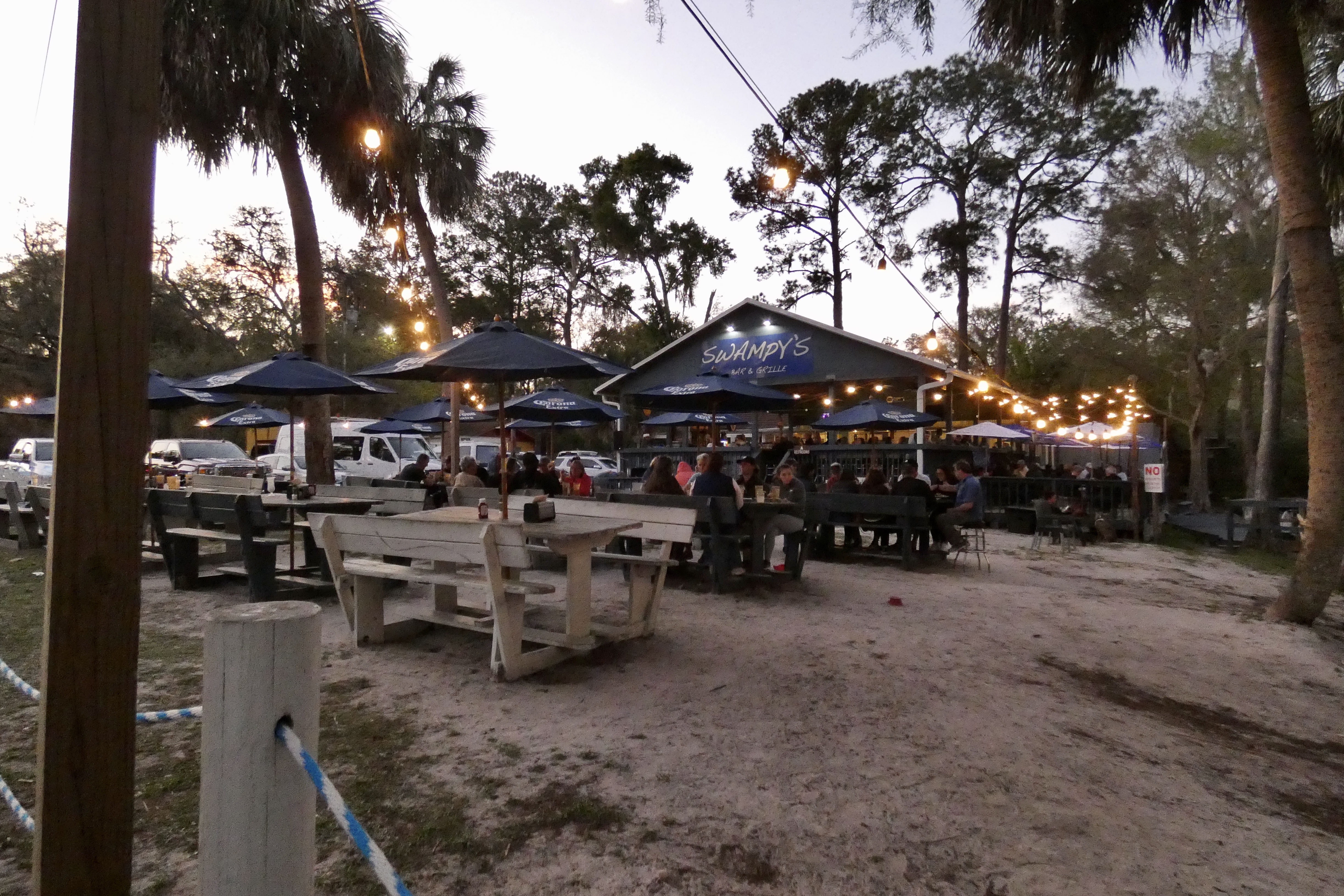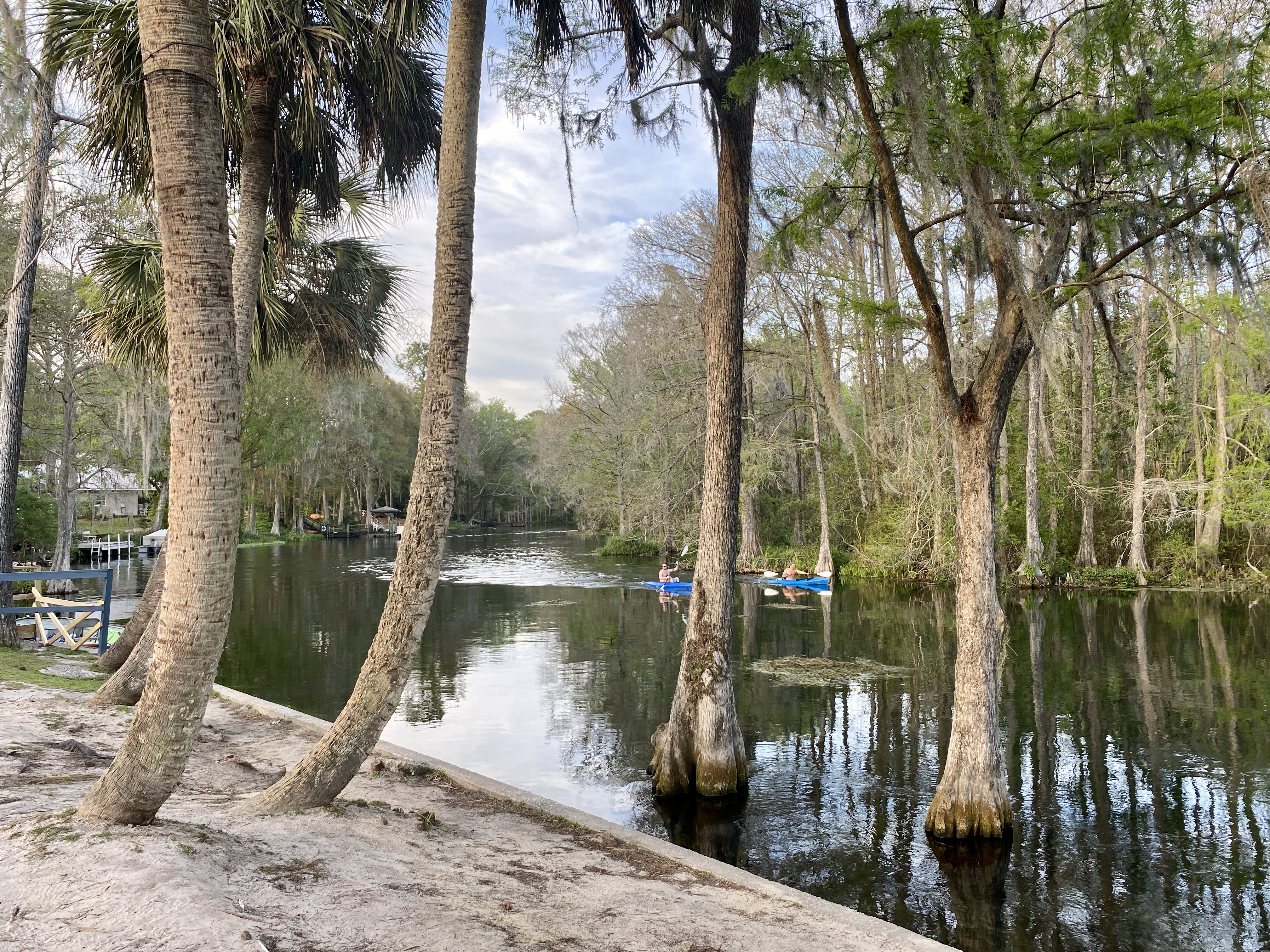 Omdat het mooi weer is, besluiten we toch nog een keer naar Crystal River te rijden. Onderweg bellen Marco, Miranda en Macy en zetten we de auto aan de kant om gezellig even bij te kletsen via FaceTime. Hun vakantiehuis is ook betaald voor mei en we hopen met heel ons hart dat ze kunnen gaan, ondanks alle corona-toestanden. Het ritje naar de rivier was een beetje nutteloos, we konden nergens aan het water een leuk plekje vinden om te zitten en wat te drinken, dus besloten we dat vanavond dichterbij te gaan zoeken. Hup, terug naar Dunnellon, even lekker lezen op bed en een uurtje of twee later naar de rivier. In die tijd vind ik wel uit dat er twee stoelen zijn vrijgekomen in de zo gewenste kleine business class cabine en krijg ik stoelnummers naast elkaar in het midden van rij 3. Yes!