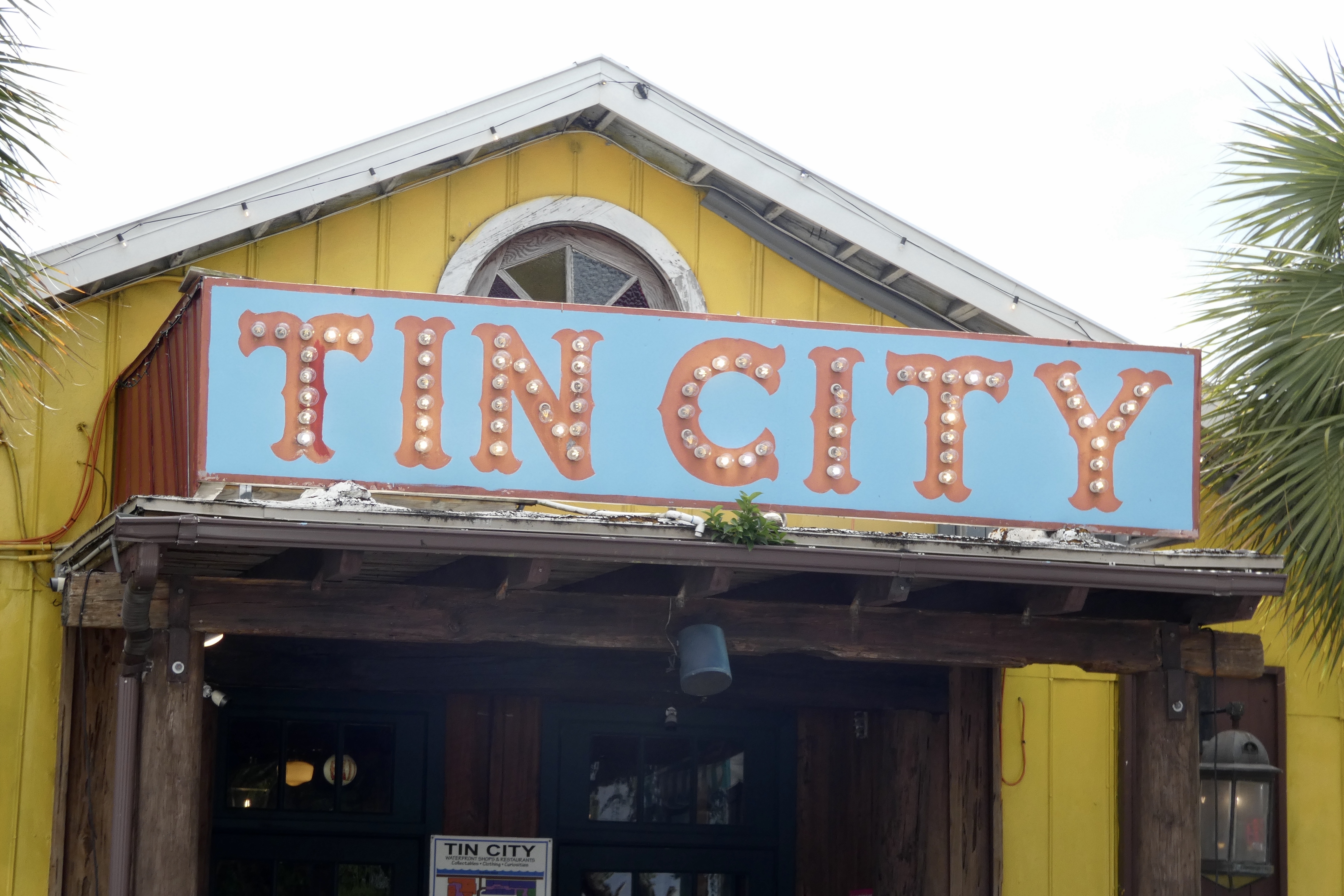 Ons volgende doel was Tin City. We kijken trouwens onderweg onze ogen uit naar de enorme villa’s, meer kastelen, die hier in deze wijk staan. We hebben al heel wat gezien onderweg, maar wonen aan de kust van Florida is toch wel een hele dure hobby volgens mij. Tin City is het tegenovergestelde, ontstaan door winkeltjes onder tinnen daken, golfplaatjes en nog steeds een verzameling kleine winkeltjes en restaurantjes, gelegen naast de plek waar de rondvaartboten vertrekken. Daarvoor vonden wij het veel te koud trouwens! Terwijl ik winkeltjes afschuim, kijkt Albert mensen en maakt stiekem foto´s. Ha, sommigen gooi ik weg, maar die zwarte kniekousen vond ik ook geweldig. Ik scoor eindelijk een paar leuke shirts voor de kleinzoons én we vinden cadeautjes voor Alberts winactie!