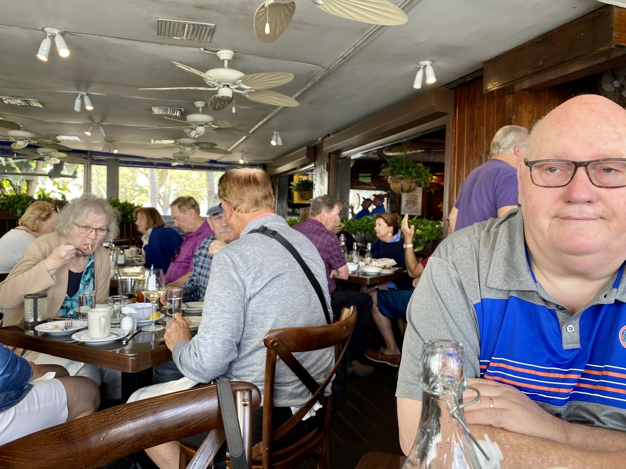 Enfin, na de was sloeg de klok al bijna half twee, dus besloten we eens wat te gaan doen. Op naar Naples Pier, maar daar waaide het zo hard, dat we niet eens de auto uitgegaan zijn. Dat deden we wel in Downtown Napels aan het Riverside Dock, waar we een hapje zijn gaan eten bij The Dock. We kregen een tafeltje naast een zeil waarmee de tent werd afgesloten, maar daar zat een enorm gat in en we waaiden bijna weg. Direct een andere tafel geclaimd en daar zaten we prima. We kozen allebei voor een Fish & Chips, want ondanks dat we geen grote vis-eters zijn, weten we wel dat die vaak erg lekker is hier. Niks te klagen, heerlijk droog krokante korst en superverse vis met lekkere frietjes.