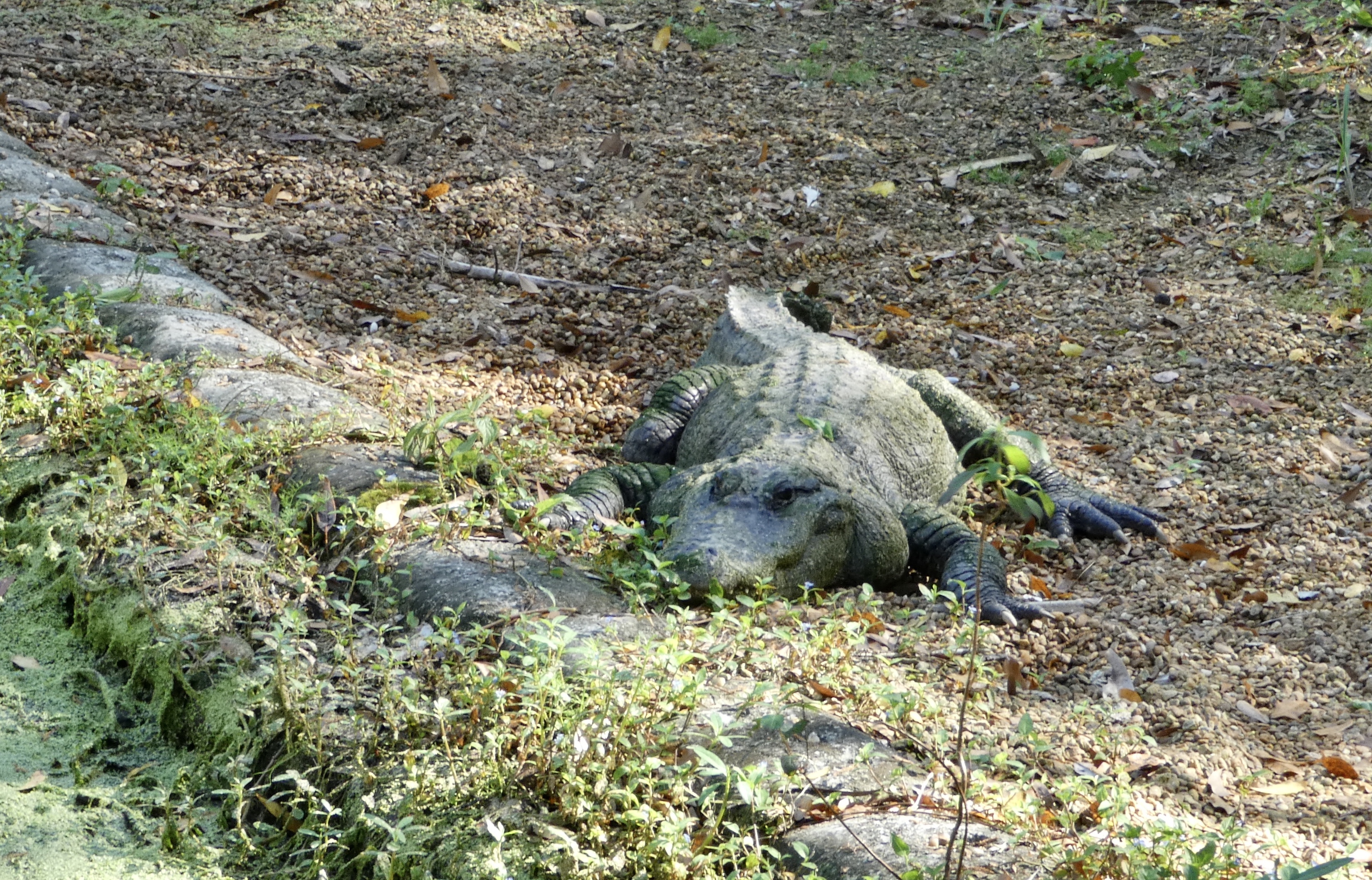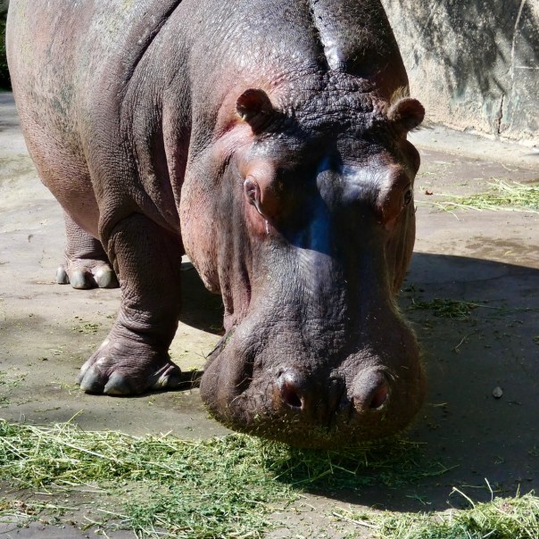De leukste thuis daar vond ik het enorme nijlpaard van 60 jaar oud wat het oudste nijlpaard in gevangenschap is. Heerlijke kop stond erop en echt even naar ons kijken voor de foto. Lekker gras op schoffelen en dan weer even plonsen. Een paar gators lagen ook te zonnen, maar dat zonnen werd wel erg heet vandaag. Het werd per half uur vochtiger en toen ik na een plaspauze met knallende hoofdpijn buiten kwam, waren we het allebei zat. Al die andere dieren die ze er opvangen, van bobcats tot zwarte beren en nog veel meer, hebben vandaag pech, want die gaan ons niet zien. Het zweet stroomt langs ons lichaam.