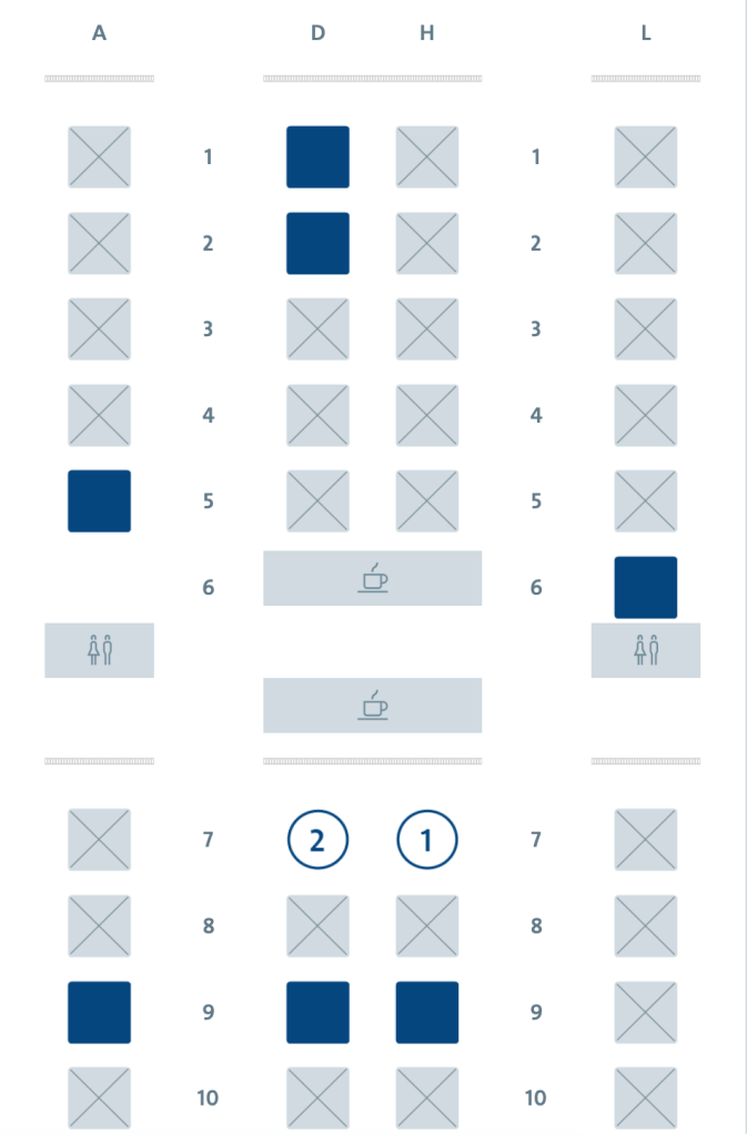 Als ik kijk naar onze reservering voor de vlucht naar huis dinsdag, zie ik zeven vrije plekken in de business class, maar nog niets naast elkaar helemaal voorin. We zouden dan graag in die voorste cabine zitten, omdat Albert het verschrikkelijk vindt dat er meer dan 200 man voorbij schuifelt en lelijk kijkt naar iedereen die zo luxe zit (ha, niet allemaal hoor!). En ik denk dat ik het dan toch ook wel prettig vind als er gewoon niemand voorbij komt met dat virus, is mooi meegenomen. Anyway, ik kijk elke dag even of er wat vrij komt, want tot en met rij zes ga je linksaf en het hele toestel gaat verder naar rechts.