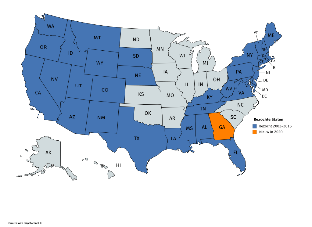 In 2002 was het zover, op naar Californië! En daar bleef het niet bij. In de jaren daarna werden in totaal nog acht reizen gemaakt, zodat de teller op 9 stond. Met deze nieuwe reis komt de ticker dus op een mooi rond getal: 10.