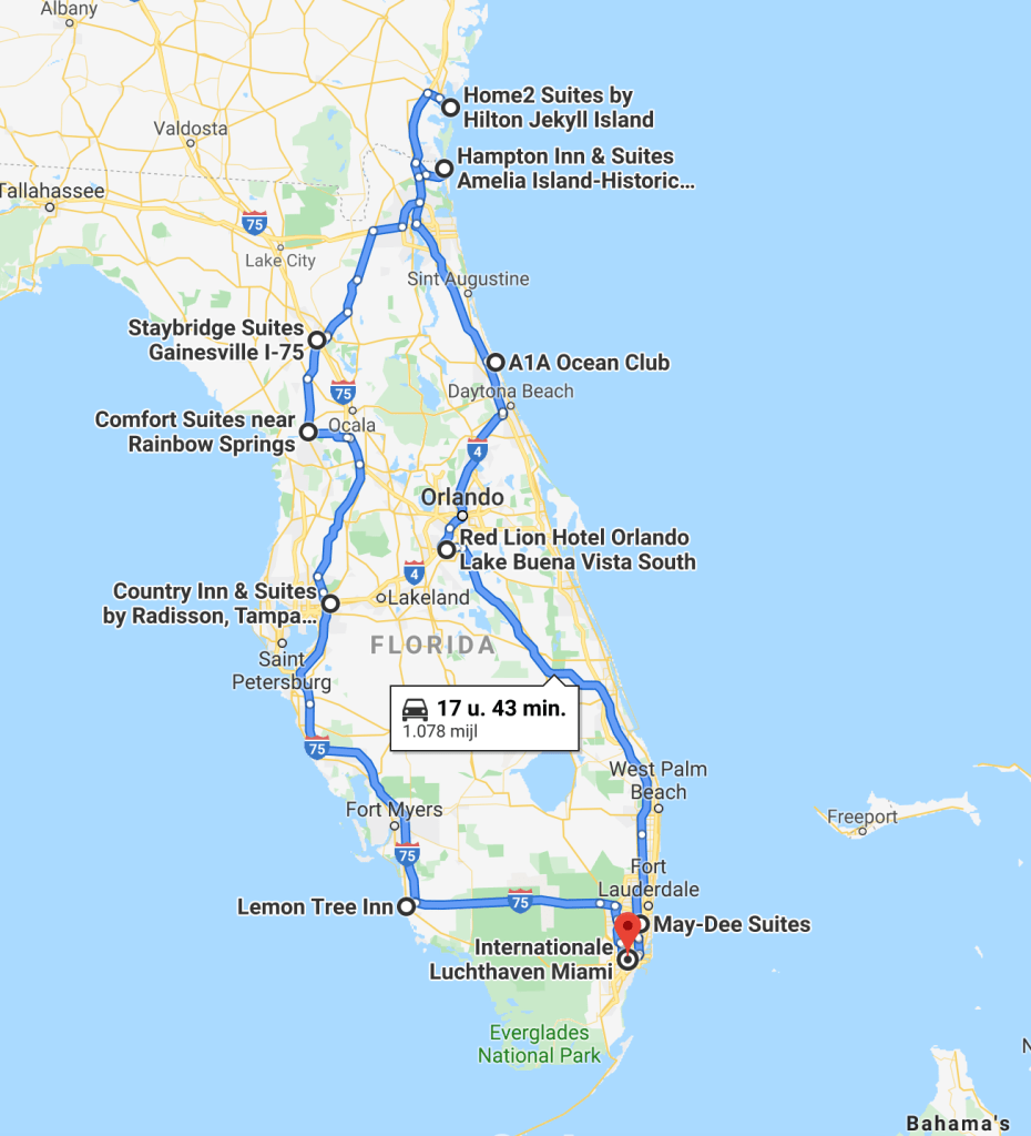 We komen op een totaal van nog geen 1100 mijlen en 18 uur rijden. Dat is echt niks voor ons, in drie weken. Dat kunnen wij gemakkelijk in een dag!